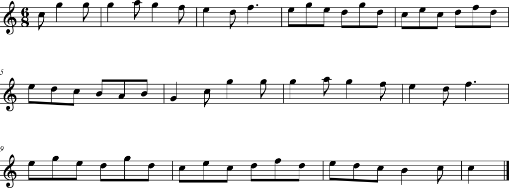 In Chapter 2A, we will explore excerpts that use a time signature of 6/8 to reflect compound duple meter. Compound-meter time signatures are most easily identified by their top number of 6, 9, or 12. The top number represents the number of beat divisions per measure. The bottom number indicates the rhythmic value assigned to the beat division. In compound meter, the beat divisions are grouped in threes, and you can determine the number of beats a compound-meter time signature indicates by dividing its top number by 3. As such, 6/8 has two beats per measure (6 divided by 3 equals 2), 9/8 has three beats per measure (9 divided by 3 equals 3), and so on. The conducting patterns for 6/8, 9/8, and 12/8 are based on the number of beats per measure; as such, you can use the same two-, three-, and four-patterns that were shown in Chapter 1.