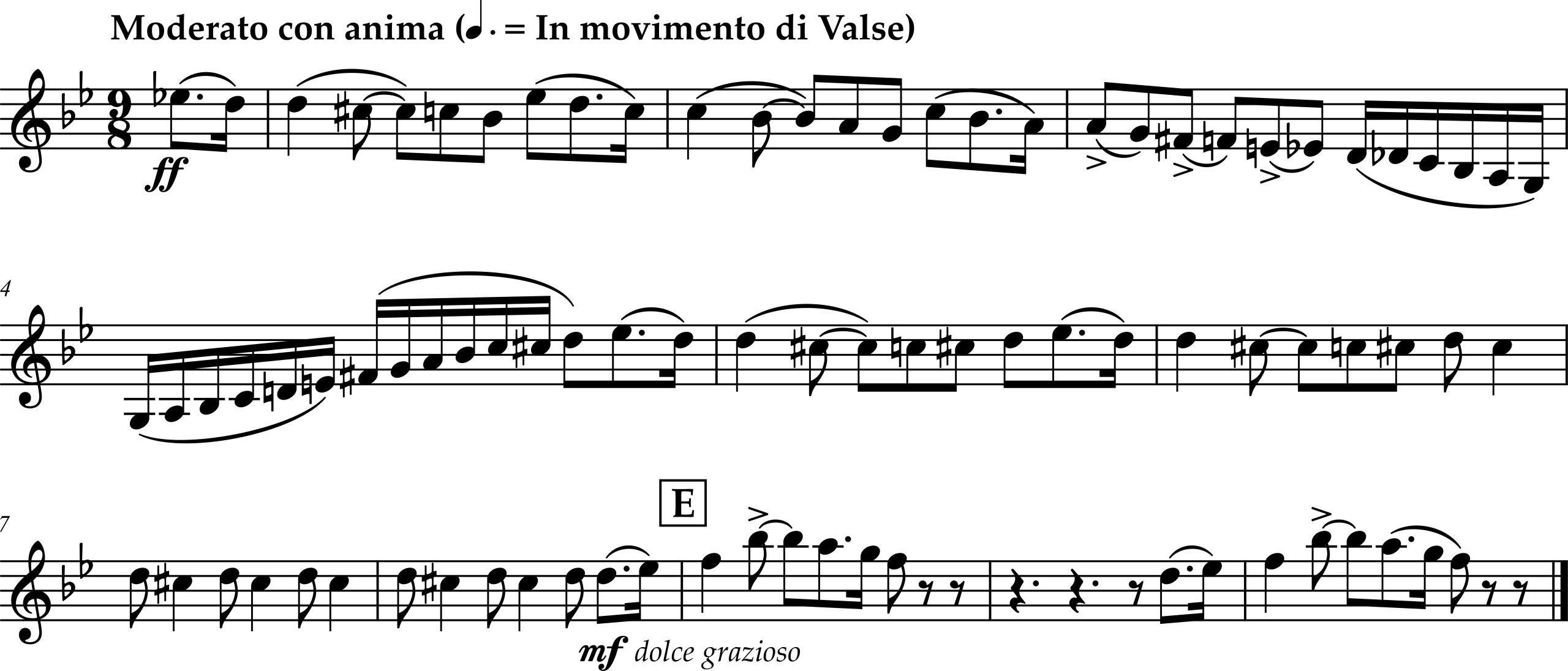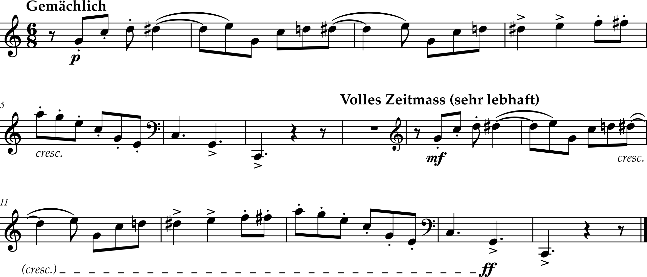 Horn 1. Measures 6–20. Public domain.